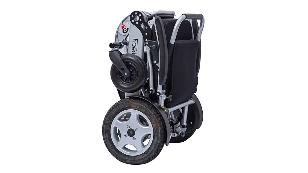 This Freedom Chair folds in one easy action taking just seconds. Weighing in at just 23.5kg it can be lifted into your car in one easy step. This chair comes out on top for the following reasons; Excellent quality of manufacture, extremely easy folding mechanism plus an option for a 45km range. You will not find a better quality folding wheelchair that folds in one easy step. Each additional battery increases range by 15km.
