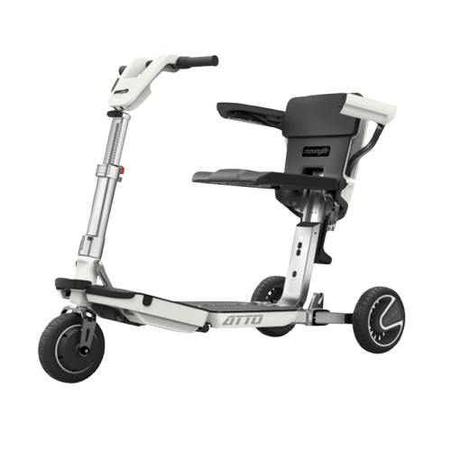 ATTO Folding Mobility Scooter ATTO from Moving Life is the most compact folding mobility scooter available in the marketplace today and folds in just a few seconds to the size of a travel suitcase.