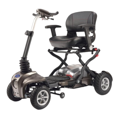 Maximo won’t fit the smallest of car boots like Minimo will but when folded it measures just 38”(97cm) long by 24”(60cm) wide and 21.5”(55cm) high. Impressively compact and transportable for a scooter offering large scooter levels of comfort and stability.